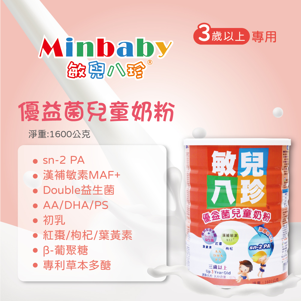 敏兒八珍 優益菌兒童奶粉(sn-2 PA配方)