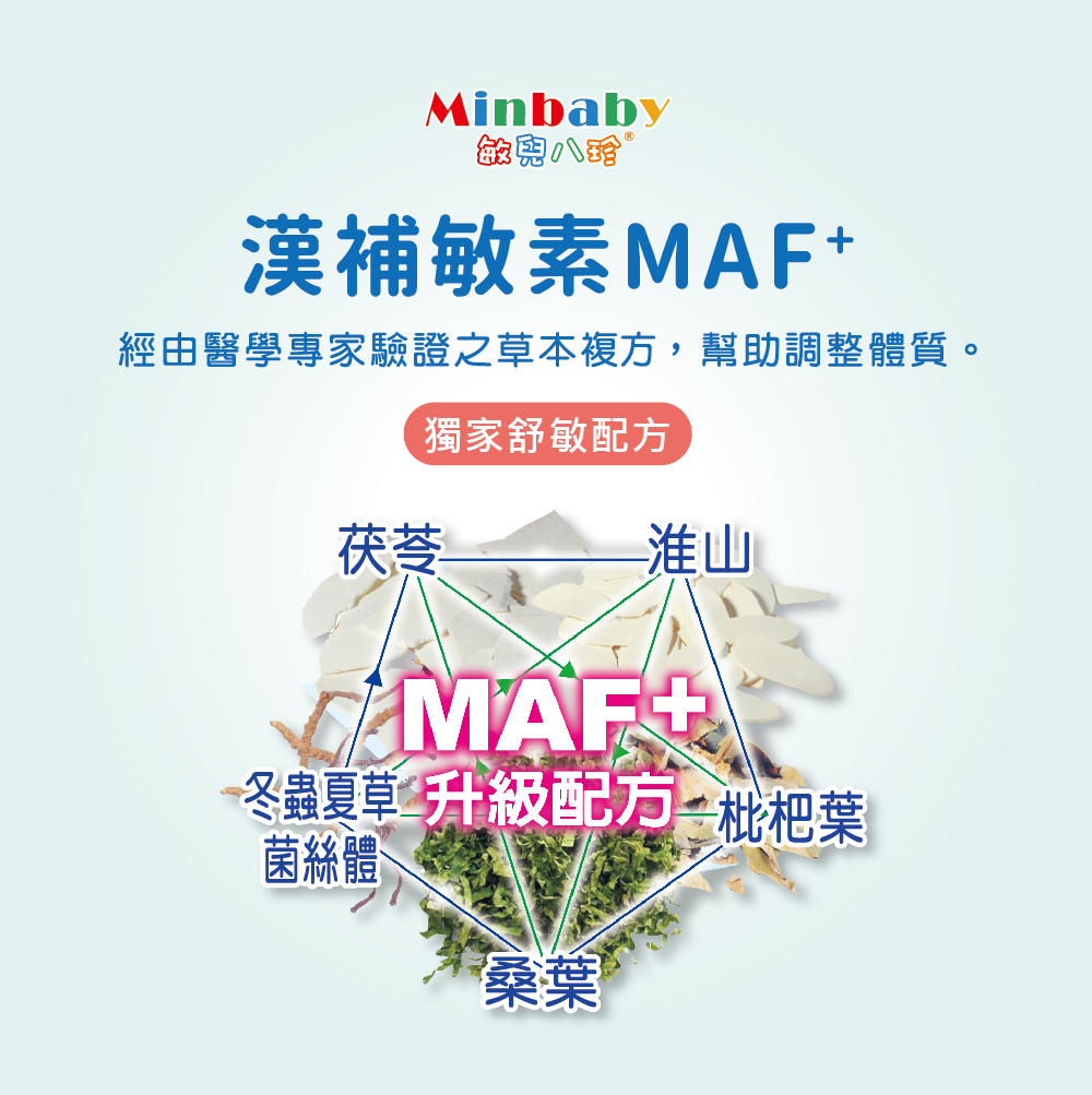 - MAF+草本配方:茯苓、桑葉、淮山、枇杷葉、冬蟲夏草菌絲體